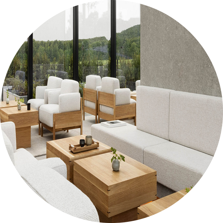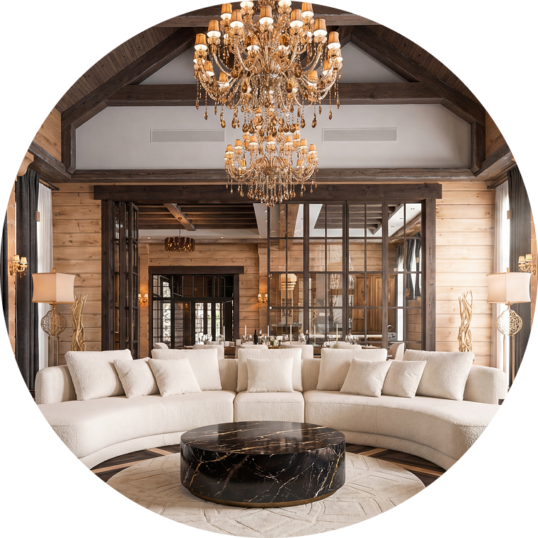 Весь цикл обустройства, комплектации и оснащения пространств собственными силами: мебель, декорирование предметами искуства, освещение, озеленение. Один подрядчик — полная ответственность.
